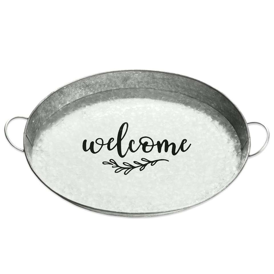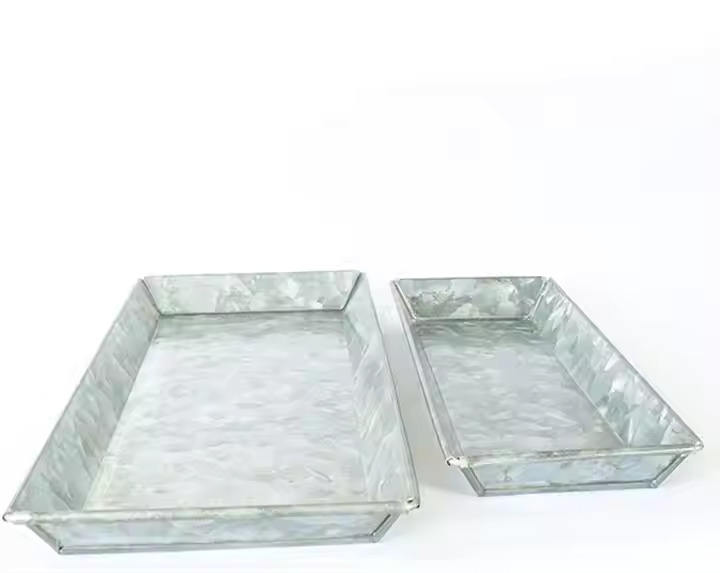 Plateau de service galvanisé avec poignée en cuivre imprimé plateau de service galvanisé avec poignée
