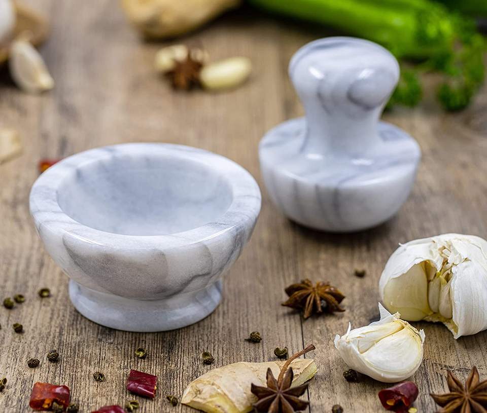 Épices en marbre blanc élégant de haute qualité et ensemble de pilon de mortier de gingembre vente chaude pour la cuisine et l'usage domestique