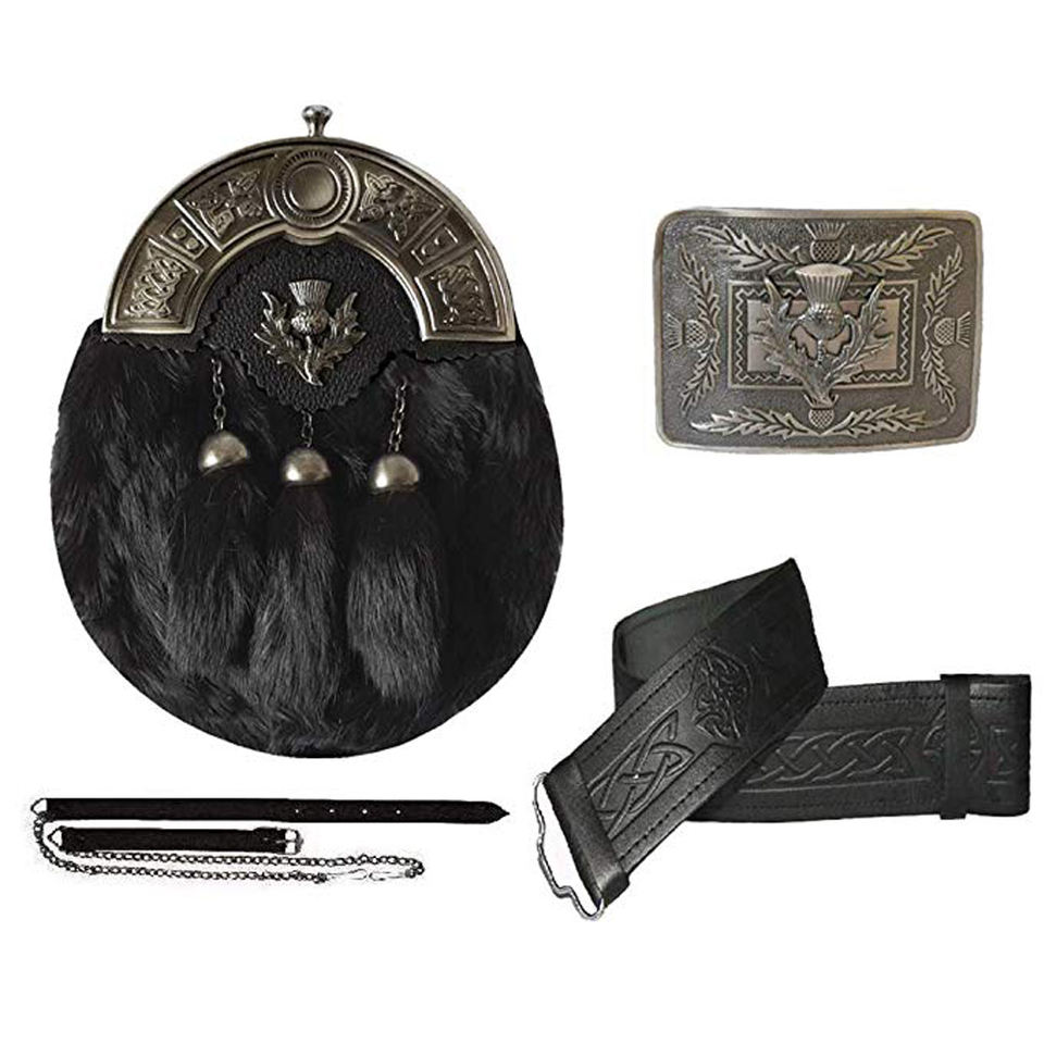 white rabbit full dress sporran with 3 tussle Cantle