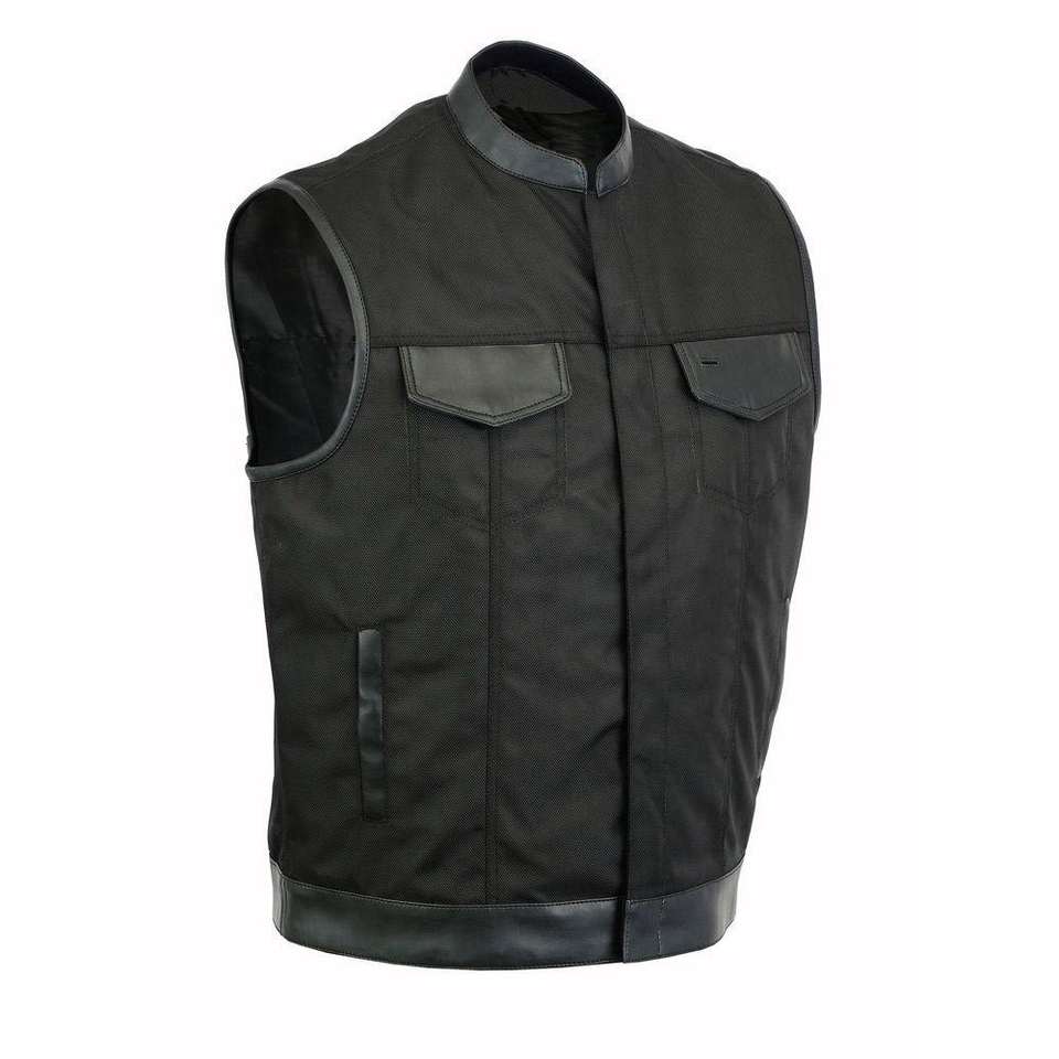 Wholesale Price Black Breathable Autumn Club Style Vest Stand O-Neck Collar Covered Button Closure Hidden Carry Pockets