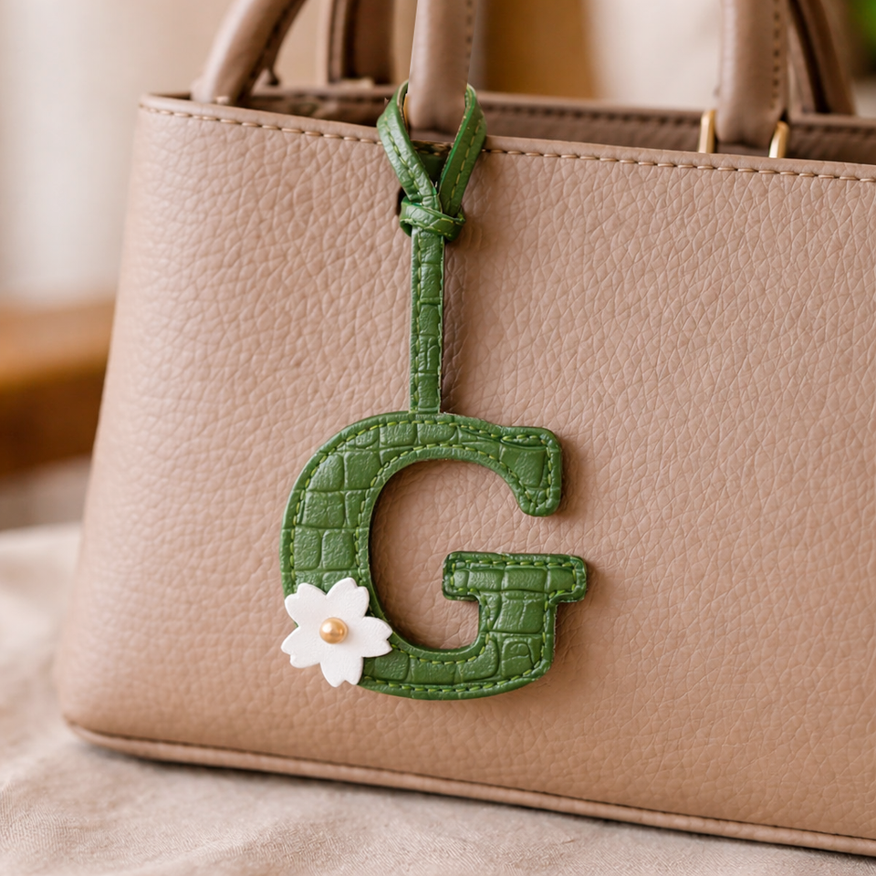Item Name:wholesale heart name initial alphabet bag charm leather