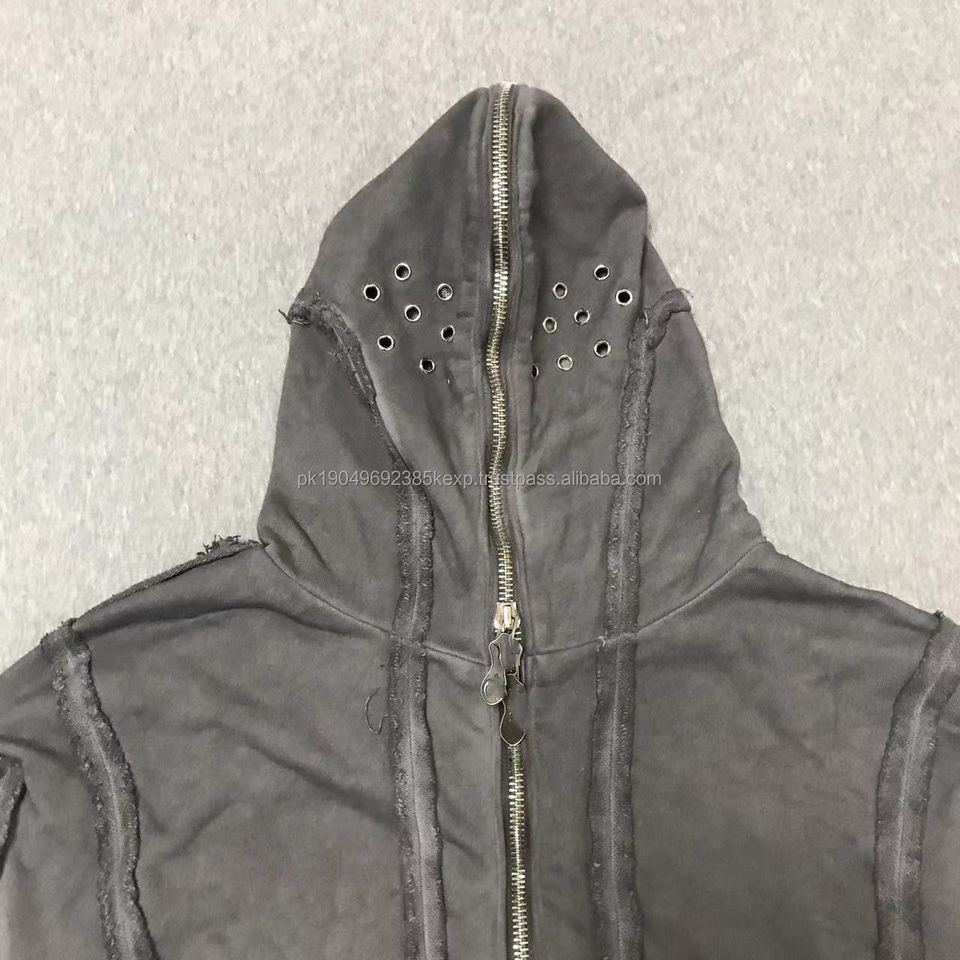 wholesale heavyweight full zip up hoodie manufacturer hoodie full zip gray washed hoodie