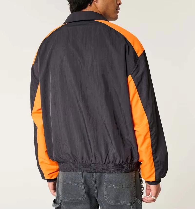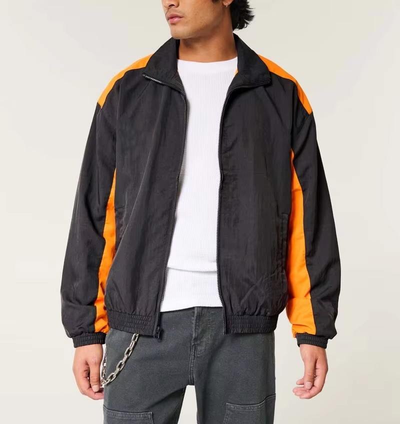 Veste coupe-vent personnalisée pour homme en nylon, design patchwork uni et contrasté, style streetwear, fermeture éclair imperméable