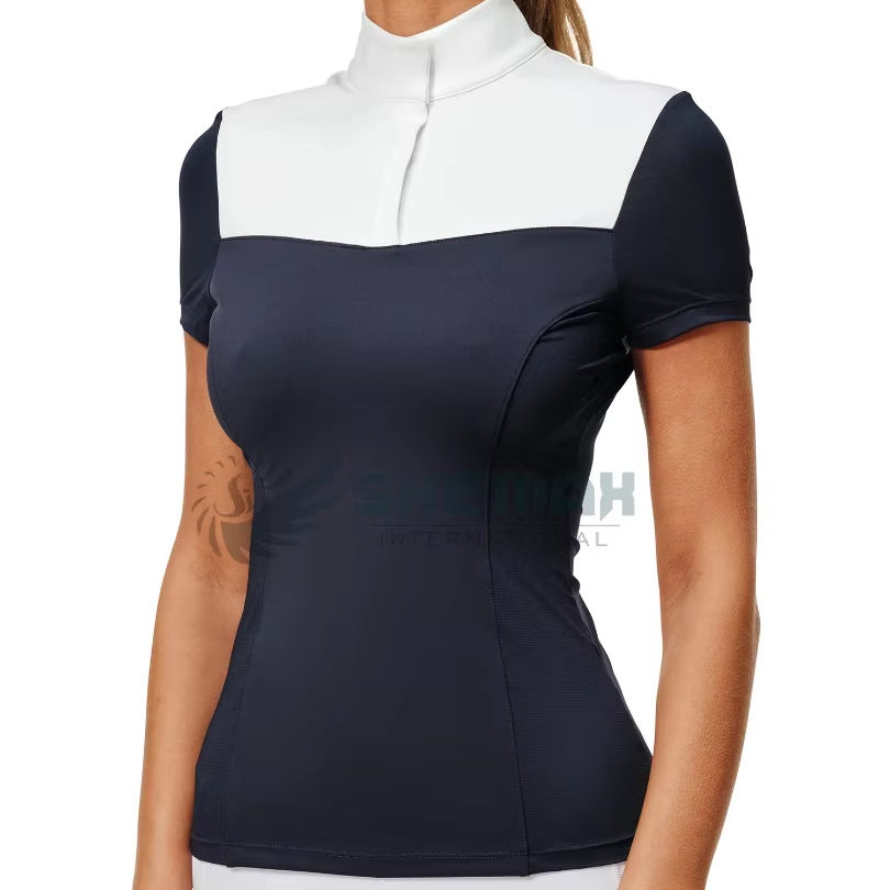 women horse riding show shirt tailored slim fit equestrian blouse with quick dry stretch material for horse riding shows