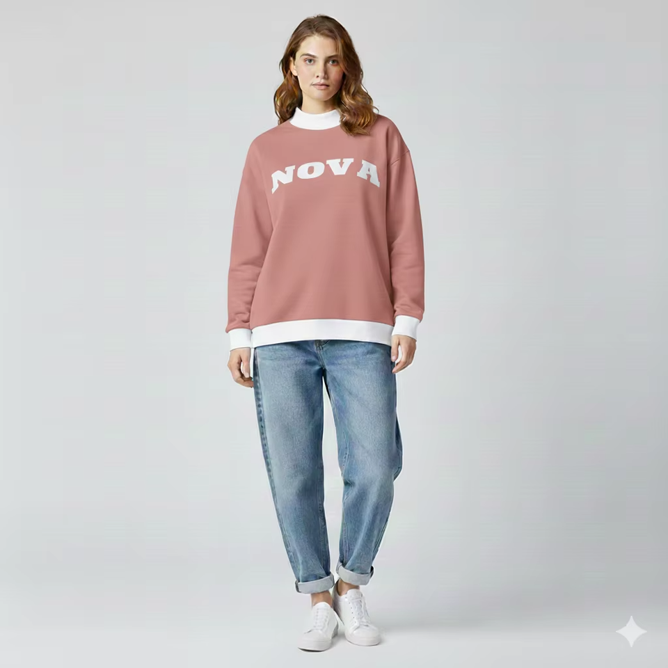 Women Oversized Stand Fleece Knit Streetwear Sweatshirt Chic Casual Everyday Pullover Top Loose Fit Autumn Winter Fashion