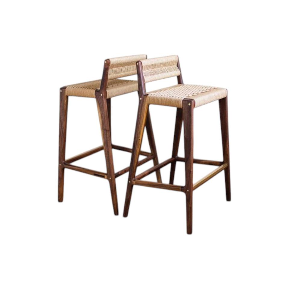 Wooden bar Chair and Rope Seat Brown Stain Color Handmade