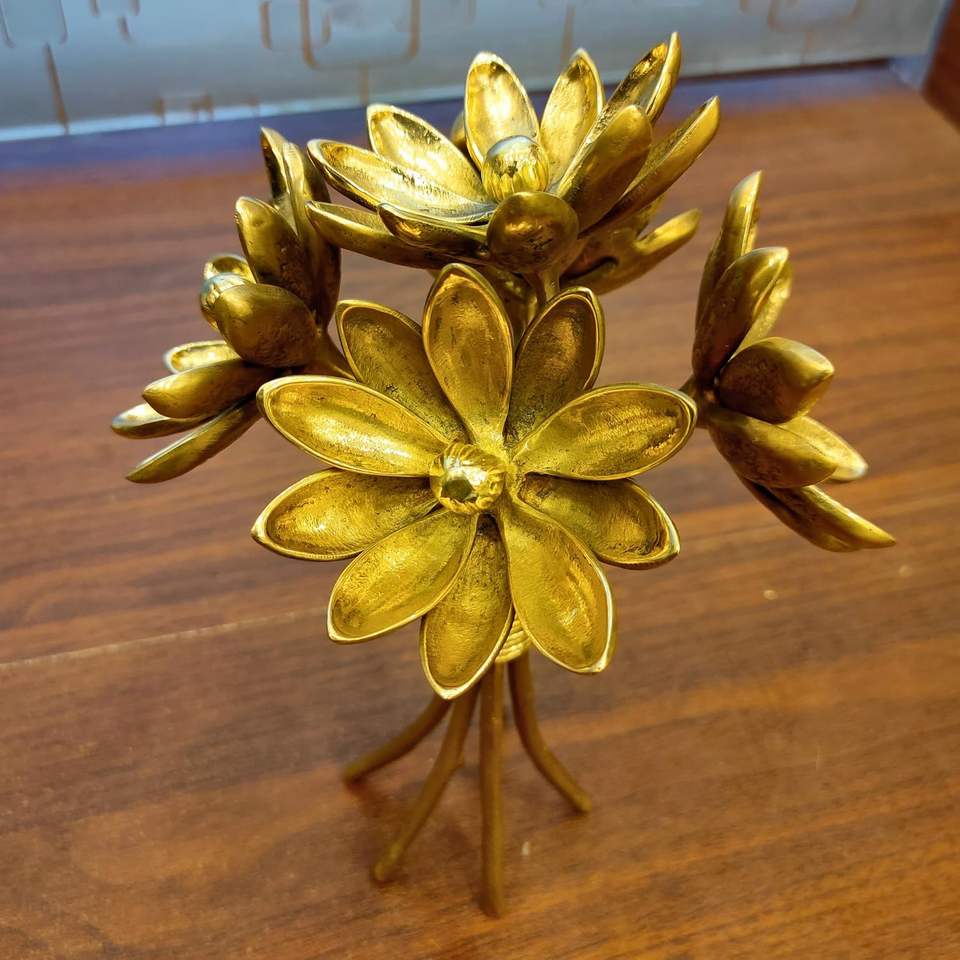 Brass Leafy Metal Branch with Flowerpattern